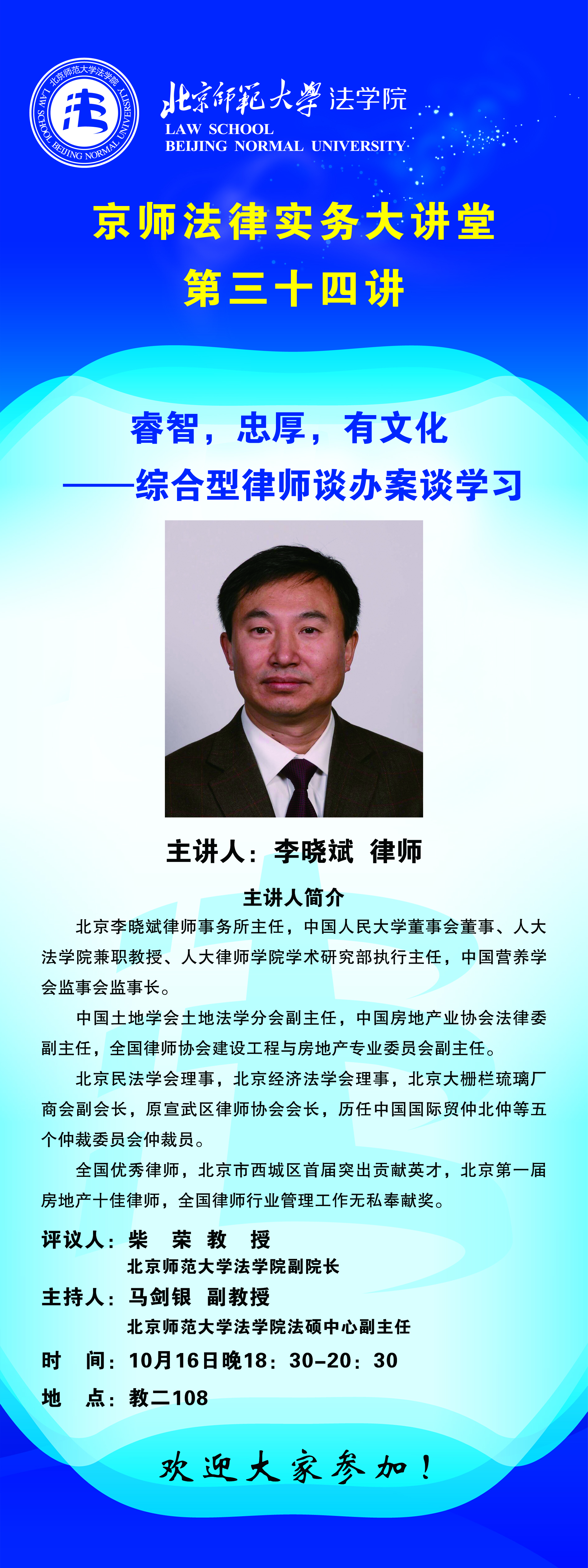 据悉,李晓斌律师是中国人民大学校董、兼职教授,人大律师学院学术研究部执行主任;全国优秀律师、北京市第一届房地产十佳律师;中国土地学会土地法学分会副主任;在全国人大最高法院国务院法制办国土部民商事房地产立法中,是参与最多贡献最大的律师之一;江平教授评价为“学者型律师”。