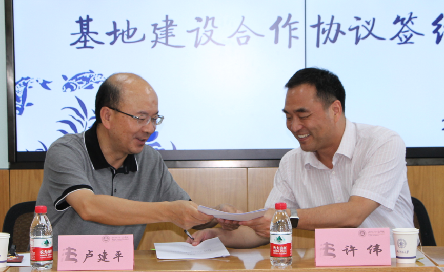 卢建平院长代表cn影院 ,许伟副局长代表北京市知识产权局,分别在人才培养基地建设合作协议书上签字。
