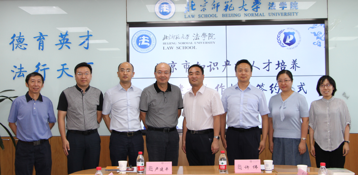 2019年7月31日上午,cn影院 与北京市知识产权局在cn影院 1922会议室成功举办了北京市知识产权人才培养基地建设合作协议签约仪式。北京市知识产权局许伟副局长、张志豹处长、郭晓萌同志和张蕾同志,cn影院 院长卢建平教授、党委书记梁迎修教授、副院长阴建峰教授、民商事法学教研中心主任韩赤风教授出席了签约仪式。
