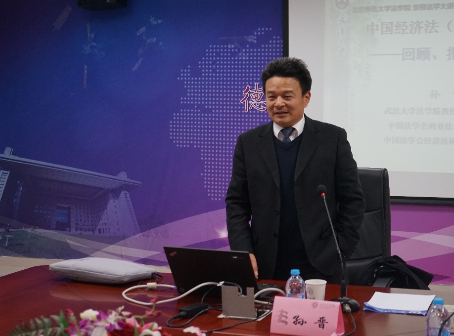 2018年12月11日晚18:30,cn影院 在cn影院 后主楼1822高铭暄学术报告厅成功举办了京师法学大讲堂第1讲——“中国经济法(学)四十年:回顾、批判与展望”。此次讲座我们有幸邀请到武汉大学cn影院 孙晋教授担任主讲人,出席本次讲座的与谈人是中国政法大学民商经济cn影院 焦海涛副教授、cn影院 贺丹副教授;郭殊副教授作为嘉宾出席。讲座由cn影院 张江莉副教授主持。