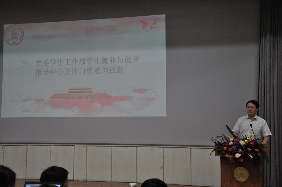 随后,党委学生工作部学生就业与创业指导中心主任白勇老师对cn影院 和华图教育为此次活动付出的努力表示感谢,对上一届“WE来可期”活动取得的成效表示肯定。白勇老师指出,习近平总书记对新时代青年的成长作出许多重要指示,北师大学子把成为一名光荣的公务员作为职业选择的重要目标,是实现报效祖国的重要路径之一。希望大家认真思考职业选择,成就个人理想,把自己的发展与国家和民族的未来紧密结合。同时也希望借此活动,加强校友联系工作,强化“扶上马,送一程”的就业服务理念。