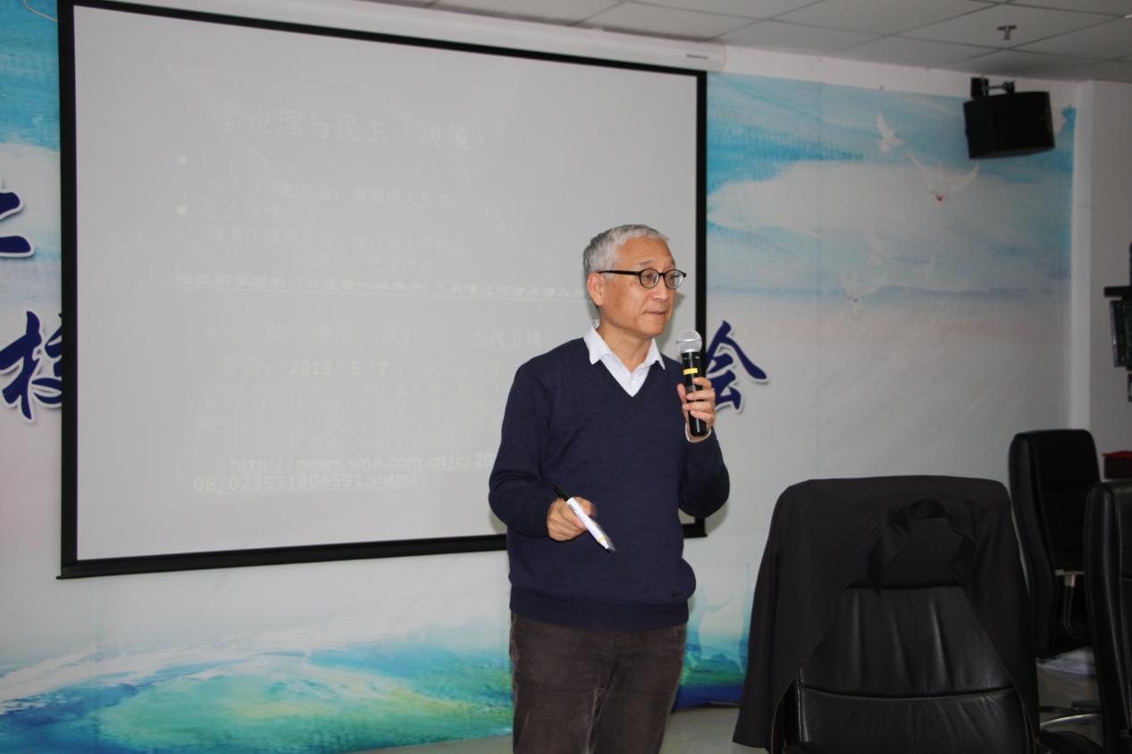 开班仪式结束后,著名教育家、西城区教育研修学院党委书记王建宗老师为各位学员做了主题为“怎样提高课程与教学的领导力”的课程。王老师首先通过微信工具调查了学员们关于分享理念、善用工具、注重实证等教育管理观念的认可度。接着又从加强课堂仪式感入手,通过生动的活动为学员们展示教育活动创新方法,与各位学员进行亲切交流。期间六位老师分别就自己的工作经历、工作中遇到的问题与大家分享了自己的感受。王老师就自己多年的教学活动,同学员们分享了自己的三个理念:科学技术是第一生产力;一言以兴邦,一语中的和工欲善其事必先利其器。课堂最后,王老师通过自己创作的一首诗勉励各位学员,在工作不断取得新成绩。
