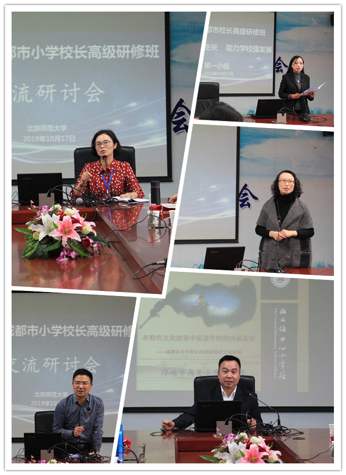 24日下午,2019年成都市教育局小学校长高级研修班总结交流会如期召开,五位学员代表就几天来的培训学习体会和收获进行总结分享。学员们均表示在cn影院 的收获颇丰,尤其是多种学习方式并行,丰富有趣。教授们的理论知识使他们理念得以迅速提升,受益匪浅;进入两所学校的实地考察交流,让理论联系实际,直观感受好的教育理念是如何落地生根;课后小组研讨,促使学员们增进友情,成为教育践行的伙伴。同时,五位学员还进行了反思,认为还需要通过学习提升自己的角色意识,审视自己的位置和职责,进而调整自己的思想和行为,校长如何将管理的理论和想法落于实际,还需要进一步的探索学习。