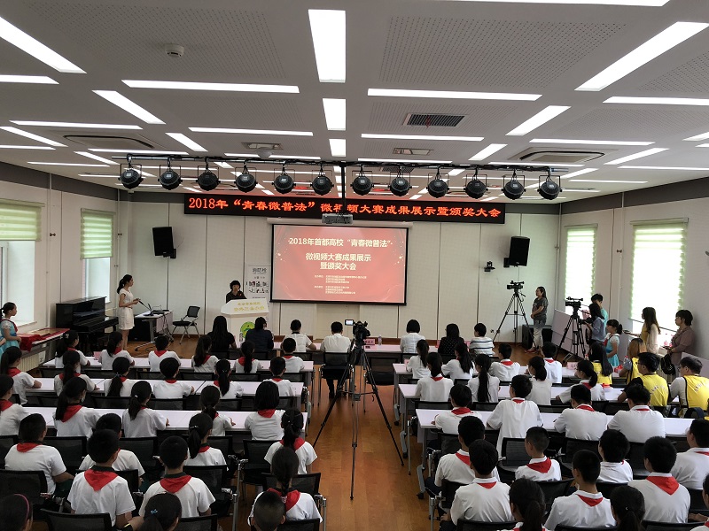 2018年6月6日下午,东城区法宣办在安外三条小学举办“青春微普法”2018年首都高校普法微视频大赛成果展示暨颁奖大会。