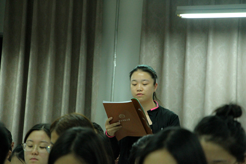 会议最后,由班主任代表李德嘉老师发言。李老师提到班主任是做好学生的服务和保护工作,希望同学们多与班主任沟通,同时班主任们也会为同学们尽可能的提供帮助。