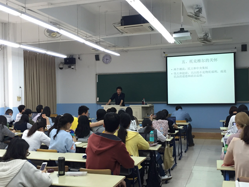为了同学们更好地理解托克维尔的理论和思想基础,林老师又为我们简要的介绍了其另一代表著作《论美国的民主》。托克维尔通过对于最极致的民主社会的观察和反思,认识到了民主的价值及其内在缺陷。这些理论都构成了托克维尔对社会、对自由和民主的理解的基础。