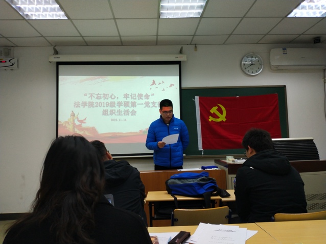 为深入贯彻落实“不忘初心、牢记使命”主题教育精神,引领党员进行自我反思与教育,进一步坚定党员信念和提高党性修养,cn影院 2019级学硕第一党支部于2019年11月14日晚,组织支部党员开展“批评与自我批评”组织生活会。九名党员全部参加了本次活动,七名党员进行了自我陈述,两名党员提交了书面材料。