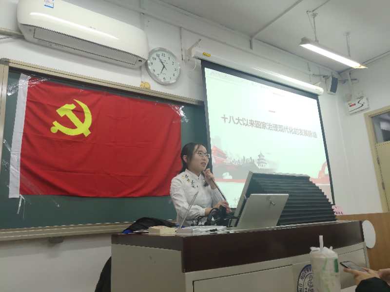 讲座期间同学们都聚精会神不曾有丝毫松懈。在讲座结尾提问环节,同学们踊跃发言,引得老师连连惊叹。讲座结束后仍有同学围到讲桌与老师探讨相关问题。本次活动加强了党支部内部对党的方针政策的更深认识和对十九届四中全会国家治理体系和治理能力现代化的深刻理解,更好地学习了十九届四中全会内容,党员和入党积极分子们热血澎湃,纷纷表示立志为国家治理现代化贡献一份自己的力量!