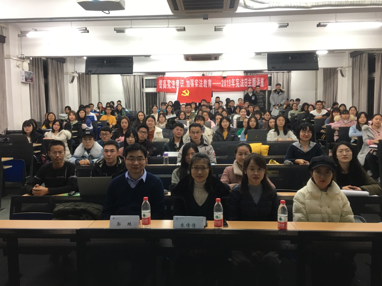 为深入贯彻习近平总书记关于加强宪法学习宣传教育的重要指示精神,贯彻落实党中央学习宪法的有关精神,2019年12月4日,cn影院 邀请到研究宪法学与行政法学的郭殊老师于教四101教室为各院师生开展主题为《提高宪法意识,加强宪法教育》的讲座。参与本场讲座的师生有:党委学工部学生党建与思想政治教育处的朱倩倩老师、cn影院 团委书记马丽亚老师以及各院学生。2019级法律硕士第二党支部组织党员和入党积极分子参加本次学习。