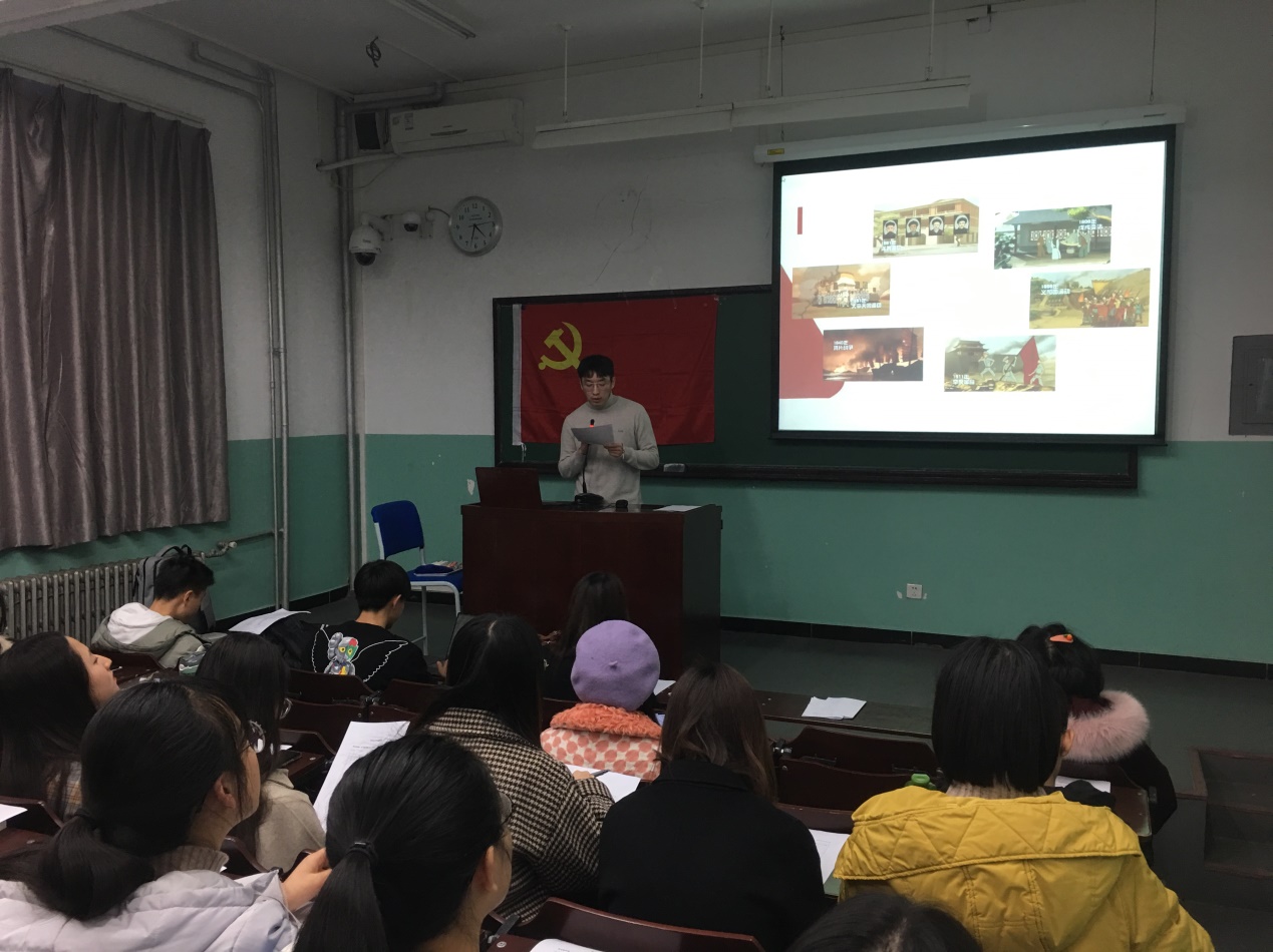 会议第一项是支部书记讲党课活动。2019级法律硕士第二党支部书记吕勇同志以五四运动作为主题,向大家详细讲述了五四运动的前后始末。五四运动作为中华民族救亡热潮中的一个壮举,是新民主主义革命的开端,是当时的一次思想大解放。它提醒我们作为当代中国青年,要继续发扬五四精神,以实现中华民族伟大复兴为己任,不辜负党的期望、人民期待、民族重托,不辜负我们这个伟大时代。
