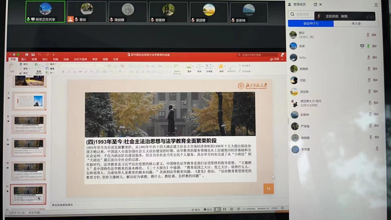 为深入学习贯彻习近平新时代中国特色社会主义思想,持续推进主题教育走实走深。2023年7月12日晚,cn影院 开展党委书记讲党课活动,讲座主题为“新中国法治思想与法学教育的发展”,主讲人为学院党委书记柴荣,院长梁迎修,党委副书记郭雅婷、蔡纹,党委委员阴建峰、何挺、贺丹、刘航、彭新林,副院长袁治杰,工会主席严厚福参加学习。