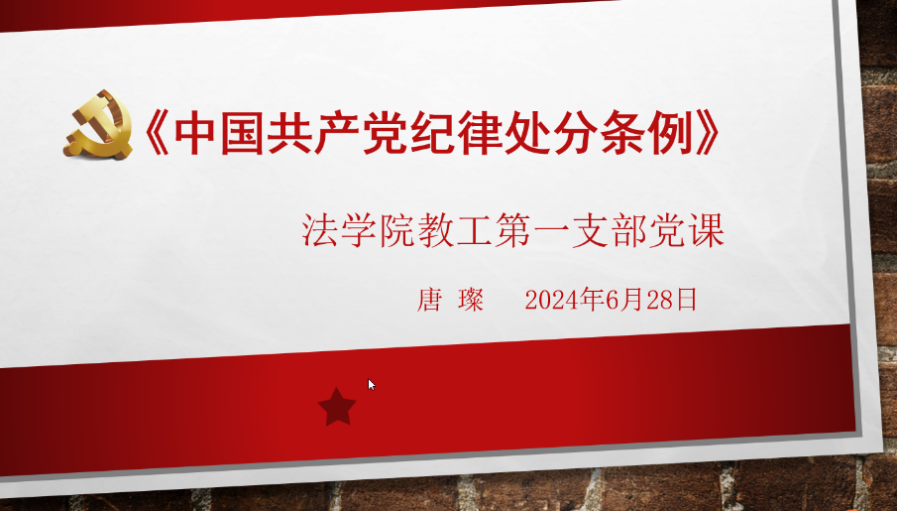 6月28日,cn影院 教工一支部围绕新修订的《中国共产党纪律处分条例》举行支部书记讲党课活动。支部书记唐璨老师围绕《中国共产党纪律处分条例》制定、修改基本情况以及结合专业谈学习体会两方面与支部同志交流对党纪的理解与运用。尤其是在纪律处分工作基本原则、纪律处分运用规则等方面,结合法律制度和具体规则讲授分析了党纪处分与政务处分以及其他法律责任的关系等问题。