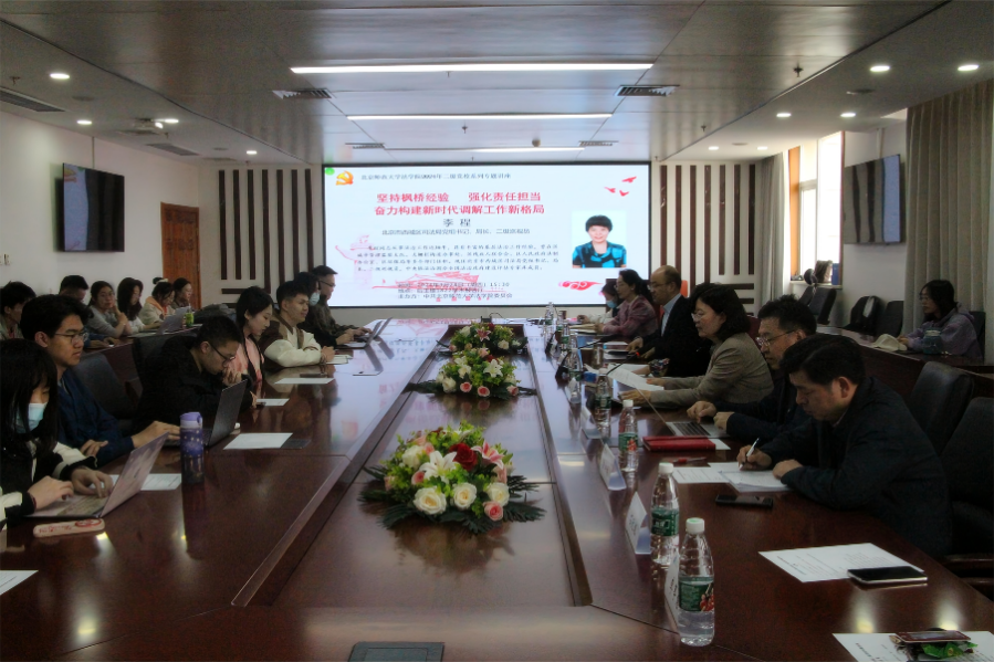 3月28日下午,cn影院 邀请西城区司法局党组书记、局长李程在后主楼1822学术报告厅开展了以“坚持枫桥经验,强化责任担当,奋力构建新时代调解工作新格局”为主题的二级党校专题讲座。西城区司法局党组成员、副局长许海龙,西城区司法局专职人民调解员贾静一,cn影院 党委书记柴荣,院长梁迎修,副院长阴建峰,党委副书记郭雅婷,党委委员彭新林出席了此次讲座。此次讲座旨在通过介绍西城区调解工作的最新情况,探讨调解工作在新时代的新发展,为构建和谐社会提供有效的纠纷解决机制。