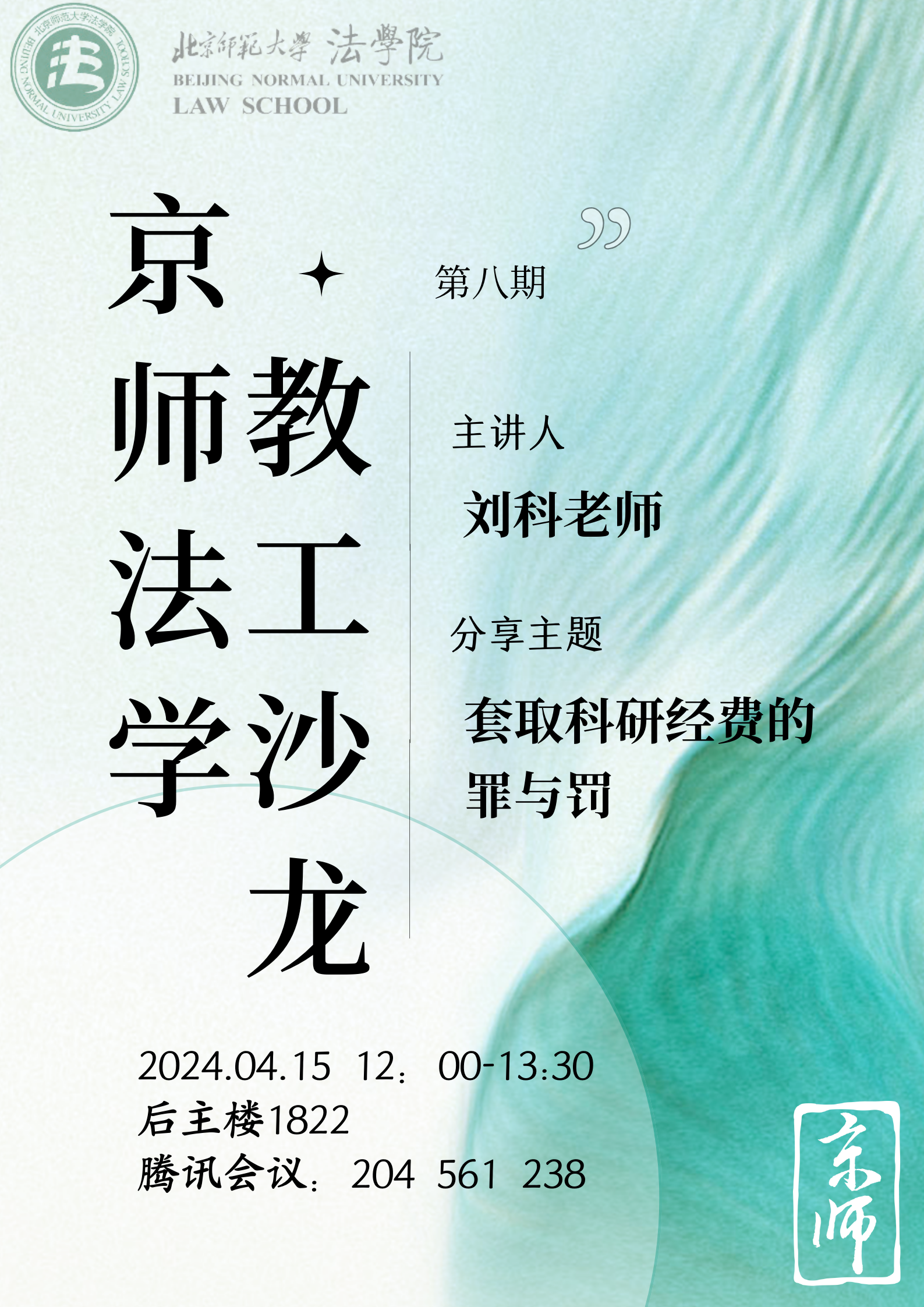 4月15日,北师大cn影院 举行第八期“京师法学教工沙龙”,邀请刘科老师主讲《套取科研经费的罪与罚》,cn影院 工会主席严厚福副教授主持本次沙龙。本次沙龙向全校其他兄弟院系的老师们开放,cn影院 和其他兄弟院系四十余位老师通过线下或者线上的方式参与了此次沙龙。