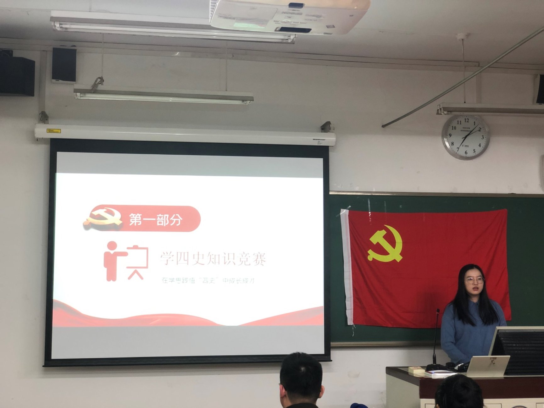 会议分为三个部分进行,首先林思丽同志对于学习四史,巩固主题教育成果的意义做了深刻阐述,她指出:“党史、新中国史、改革开放史、社会主义发展史是中国共产党和中华民族弥足珍贵的财富,只有对“四史”深入学习透彻,才能为我们的进步发展指明道路、引领方向。”接着她拉开此次活动的第二部分知识竞赛,本次知识竞赛是通过线上扫码做题的方式来进行,目的是了解我们党支部对于四史知识的了解和掌握情况。对于掌握的薄弱环节,我们在活动结束后,要进行有针对性的集体学习。