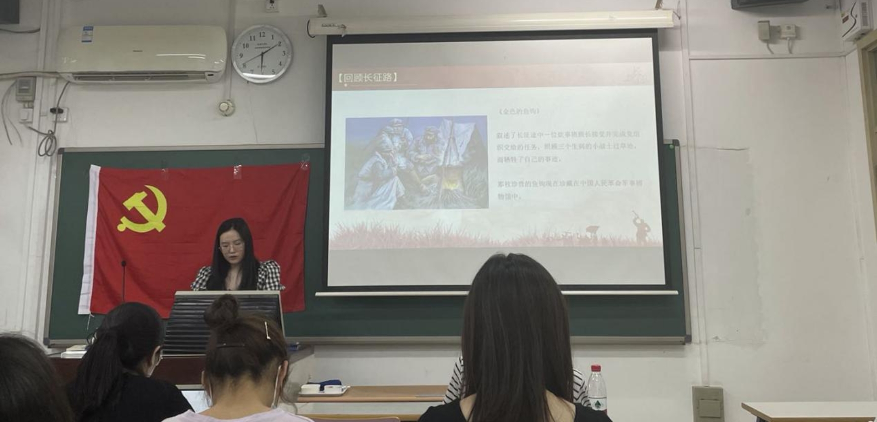 首先是本次活动的第一个环节——支书讲党课。林思丽同志所讲述的内容为:长征精神永放光芒。她从回顾长征路讲起,延伸到长征精神的内涵、最后论述如何走好新时代的长征路。层层递进,将长征发生的原因、长征中的故事、长征的意义穿插其中。在讲述时,林思丽同志注重和党员同志们的互动,加强党员对课程的理解。在结束之后,林思丽同志强调:“我们要以革命先辈为榜样,坚守初心,牢记使命,发扬党的优良传统和作风,把长征精神一代一代传下去,奋发图强,开拓前进,为建设新时代中国特色社会主义奋力拼搏。”