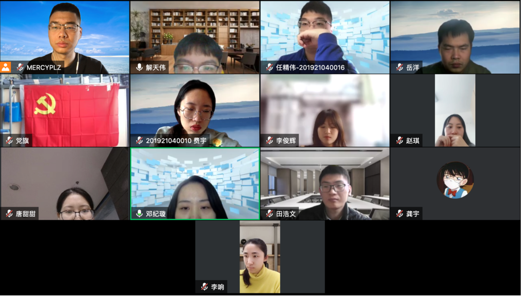 为进一步加强党支部建设,促进支部成员互相交流与学习,2021年1月16日,cn影院 2019级学硕第一党支部通过线上会议的形式召开了2020年度组织生活会与民主评议党员大会。本次会议由党支部书记尹嘉宁主持,支部全体党员参加,支部对接教师李响老师出席本次会议。