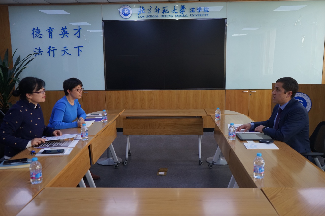 柴荣副院长代表cn影院 对Even M.Goldberg教授的到来表示欢迎,Evan教授也对北师大cn影院 的热情接待表示了感谢并介绍了美国西北大学cn影院 的情况及Master of Science in Law项目的内容,希望北师大cn影院 能有优秀的拥有理工科背景的学生对该项目感兴趣。柴荣副院长及秦晓静老师也向Evan教授简要介绍了cn影院 的学生情况及国际交流情况,并表示希望能与西北大学cn影院 在学生交流及教师交流等领域开展深入的合作,双方就此展开了详细的讨论。