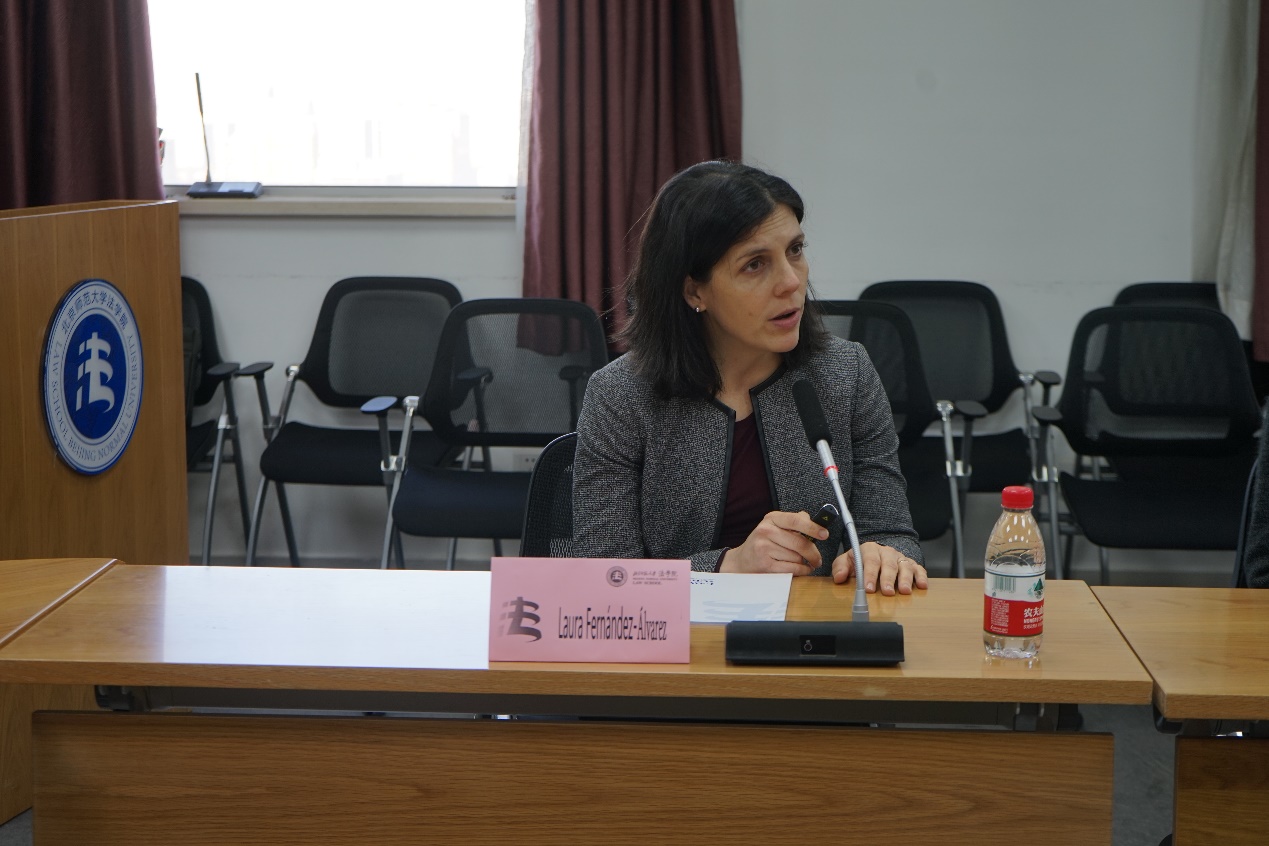 Laura Fernandez-Alvarez院长首先向同学们介绍了美国俄亥俄州立大学莫里茨cn影院 的大致情况、地理位置等信息,着重介绍了Masters of laws(LL.M)项目,就课程与学分设置、师资力量、优势专业方向等情况进行了详细说明。