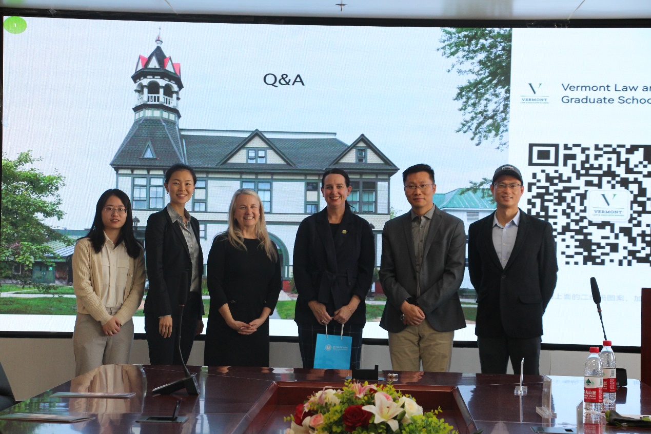 2023年10月26日上午,美国佛蒙特cn影院 (Vermont Law School)院长Marybeth McCormack教授、佛蒙特cn影院 主管招生的副院长Katherine Merrill女士、佛蒙特cn影院 法律硕士项目主任张小羽女士到访北师大cn影院 。cn影院 副院长何挺教授、严厚福副教授出席了会见,双方就学生培养、教师交流、学术研究等合作事宜进行了友好交流。