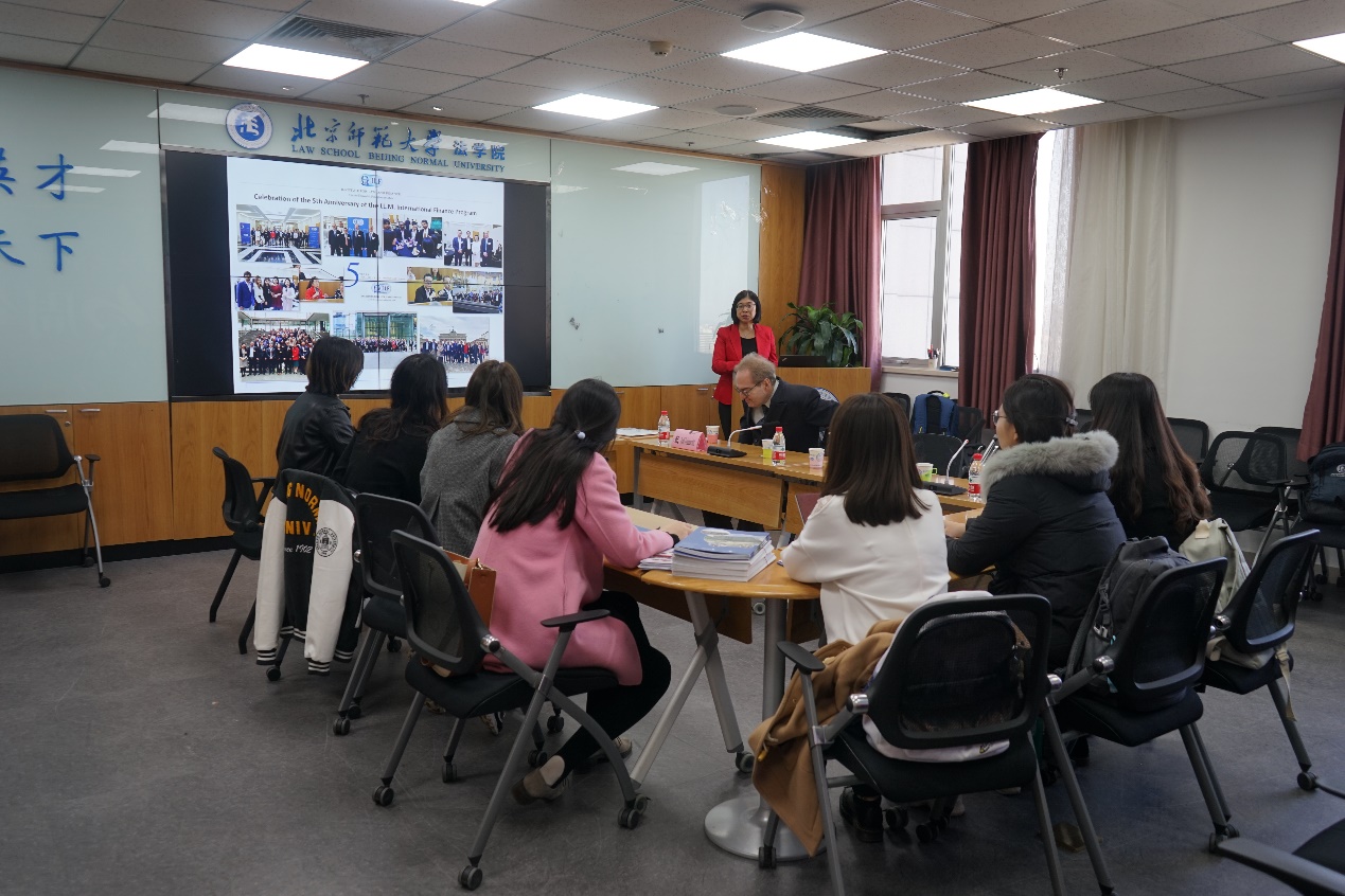 Shen Dee Kobbelt女士首先播放了法兰克福大学的宣传片,就法兰克福大学的院系和专业、师资力量、学生数量等情况进行说明,随后进一步地向同学们展示了法律与金融学院的建院时间、院系宗旨、地理位置等情况。最后重点介绍了国际金融法学硕士项目,就生源情况、课程与学分设置、实习合作单位、学术讲座举办等情况进行了详细而具体的说明。