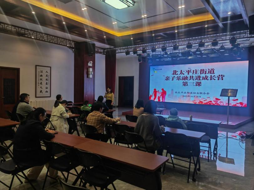 2023年10月28日,cn影院 志愿队协助北太平庄街道妇联开展“亲子乐融共进成长营”第三期讲座活动,该活动在北太平庄街道办事处南楼举办。在主讲和三名志愿者的协助下,北太平庄街道“亲子乐融共创成长营”第三课顺利进行,课堂氛围轻松愉快,孟老师主要通过举例子的方式展开育儿讲座,通过各种生动有趣的照片和事例对为什么要写育儿日记、以及如何写育儿日记的问题进行了全面地讲解,并对不同种类的育儿日记进行了分享。