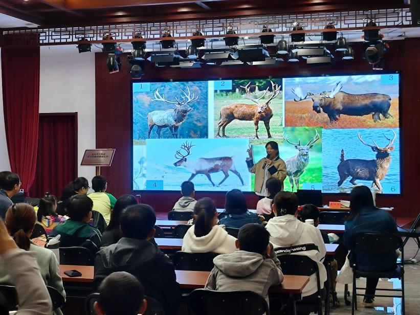 2023年10月21日,cn影院 志愿者参与由北太平庄街道妇联携手北京市科学技术研究院开展的“馆长脱口秀”系列活动,该活动在北太平庄街道办事处会场举行。活动以《千年沧桑话麋鹿》为主题,邀请北京麋鹿生态实验中心的朱佳伟老师主讲,旨在为儿童科普麋鹿的相关知识,培养亲子关系,cn影院 四位同学作为志愿者参与了本次活动,负责活动当天的签到和秩序维护等事宜。