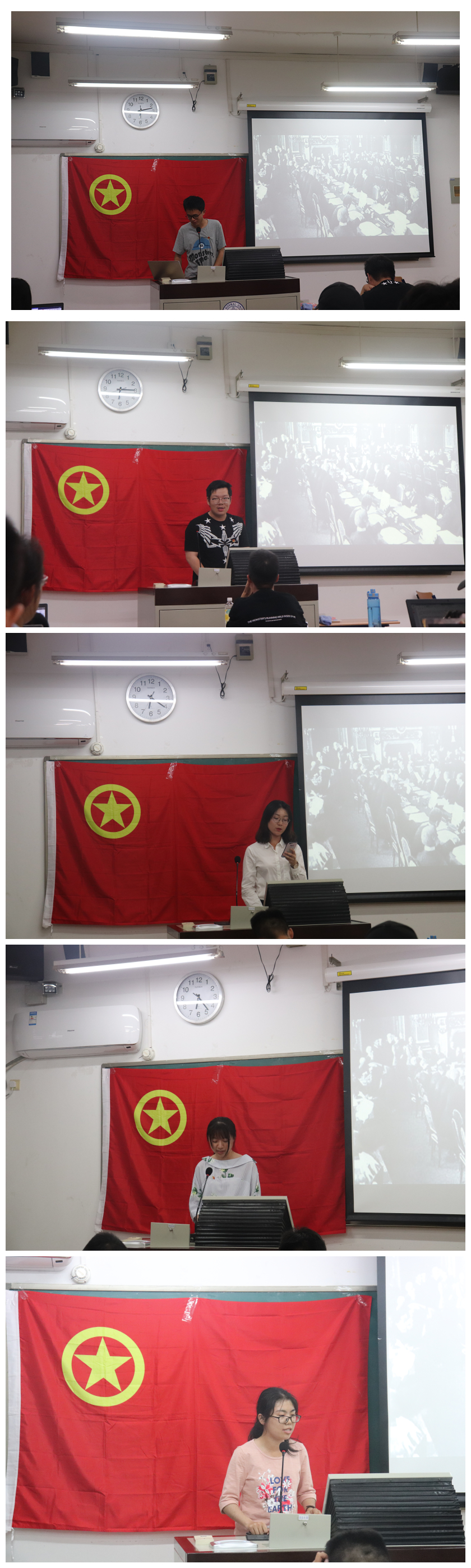 为了响应习近平总书记在北京大学师生座谈会讲话中所提出的“培养德智体美全面发展的社会主义建设者和接班人”、“抓好马克思主义理论教育,深化学生对马克思主义历史必然性和科学真理性理论意义和现实意义的认识”、“要了解中华民族历史,秉承中华文化基因,有民族自豪感和文化自信心”的要求,同时为了继承师大学子忧国忧民,热爱祖国,勇于探索,敢于创新,积极奋战在革命第一线的五四精神,2018年5月27日晚,cn影院 2017级卓越实验班团支部与2017级瀚德实验班团支部共同开展了“不忘初心,紧跟党走”五四青年节主题团日活动。