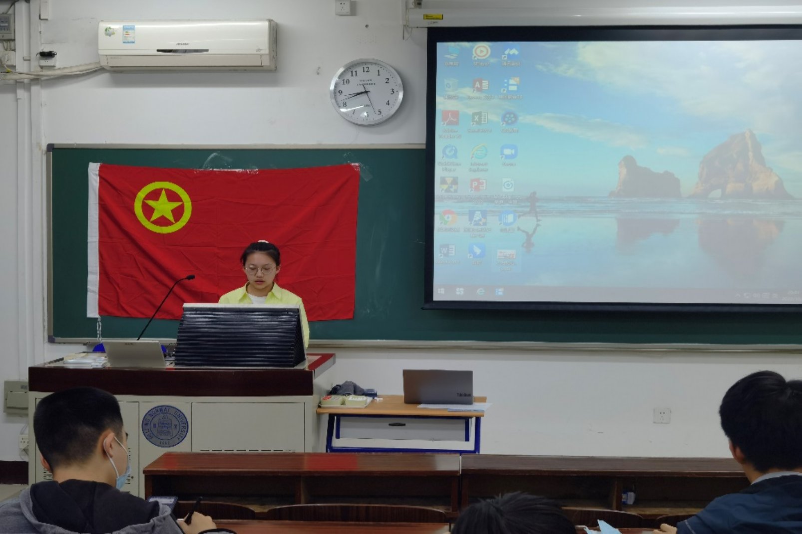 团支部宣传委员周秋桐宣读了入党推优条件,并按团校成绩从高到低,最终确定了肖天姣、姚述军、熊思朵、吴为、曹越云、魏易真、孙湉八位候选人。候选人均开展了三分钟的思想汇报。
