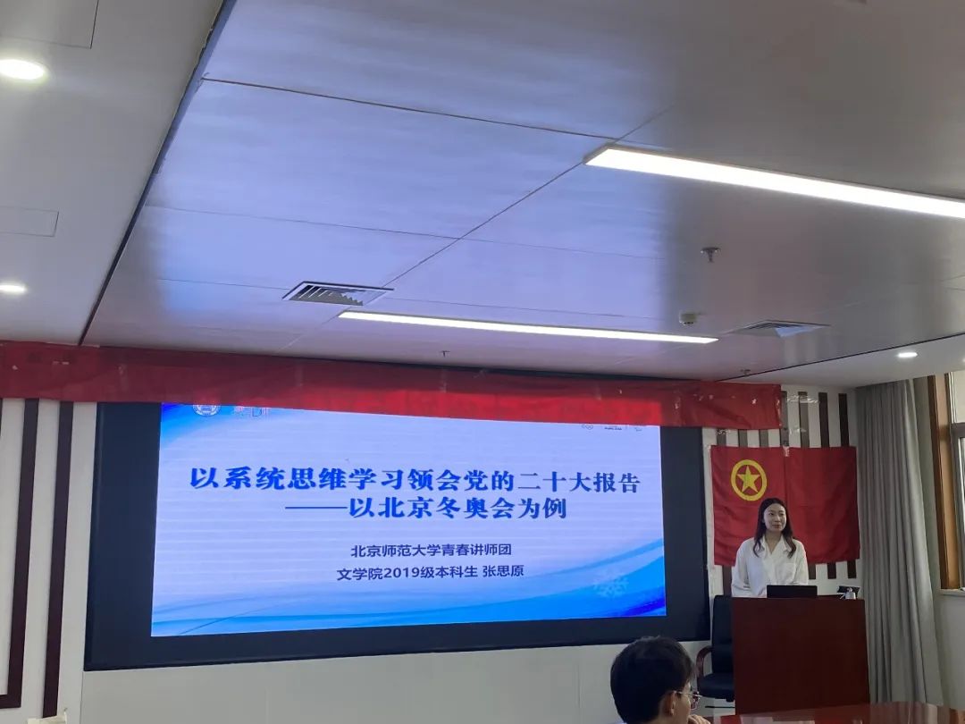 会议第二项为理论学习。cn影院 青春讲师团讲师张思原以“以系统思维学习领会党的二十大报告——以北京冬奥会为例”为题进行宣讲。她将冬奥会与党的二十大报告相结合,从中国参与奥运会的历史等多个角度对冬奥会进行整体性、全局性的讲解,体现了二十大报告“加快构建新发展格局,实现高质量发展”的思想与冬奥会“一起向未来”的精神,使参会者收益匪浅。