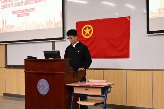 2023年5月5日晚18时,为弘扬五四精神,传递青春能量,加强团组织与团员之间的密切联系,cn影院 团委组织部与理论研究部特举办五四青年论坛暨团校结业典礼,引导团校成员牢牢把握发展机遇,向优秀党员、优秀团员学习,增强社会责任感、历史使命感。本次活动分为初级团校结业典礼和青年论坛两大部分。活动邀请到了cn影院 团委青年发展研究中心、青年科创服务中心主任古宇飞老师、cn影院 党委副书记郭雅婷老师、cn影院 团委书记陈轩禹老师出席。