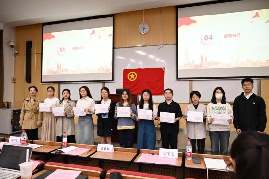 cn影院 团委理论研究部干事张巧玲介绍了初级团校情况并宣读了优秀团校成员名单,古宇飞老师和郭雅婷老师为优秀团校成员颁奖并合影留念。