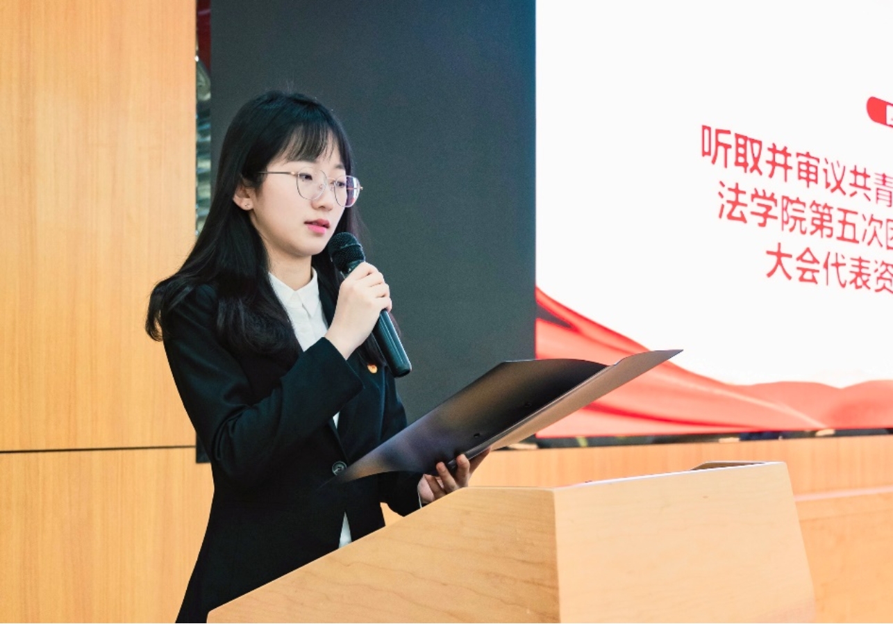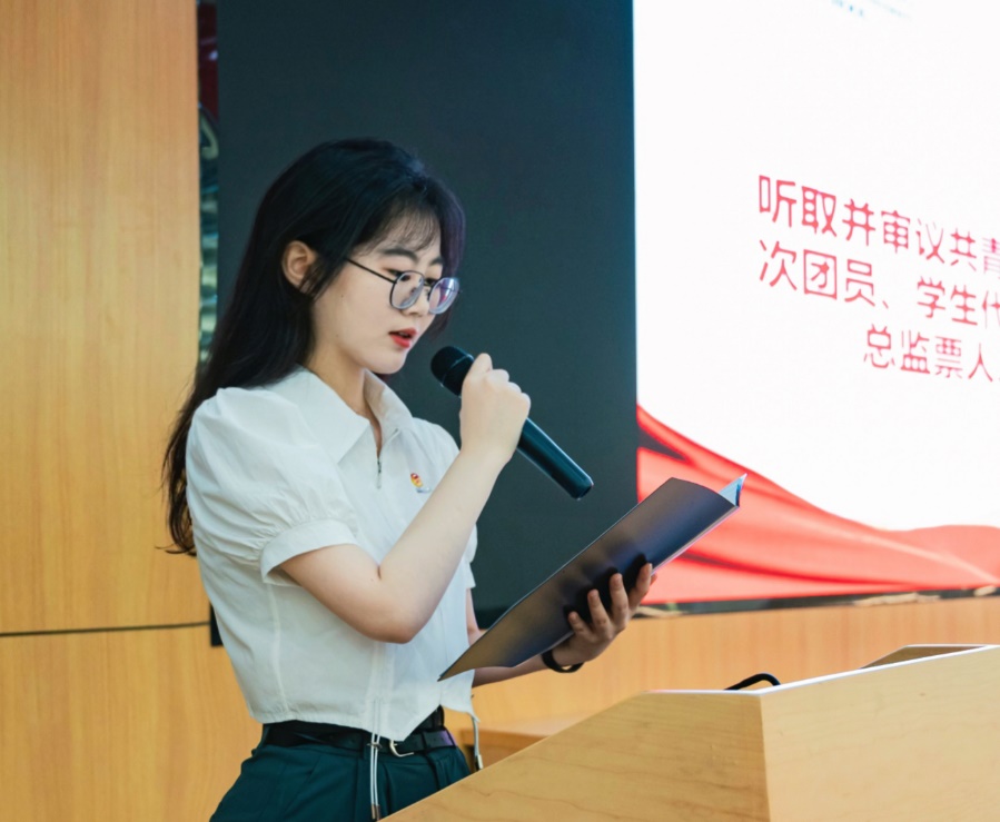 会议第五项,听取并审议共青团cn影院 第五次团员、学生代表大会选举办法(草案),总监票人、监票人、计票人名单。听取并审议共青团cn影院 第十七届委员会候选人、第十八届学生会主席团成员候选人、第十二届研究生会主席团候选人名单。孙艺菲宣读选举规则与名单。