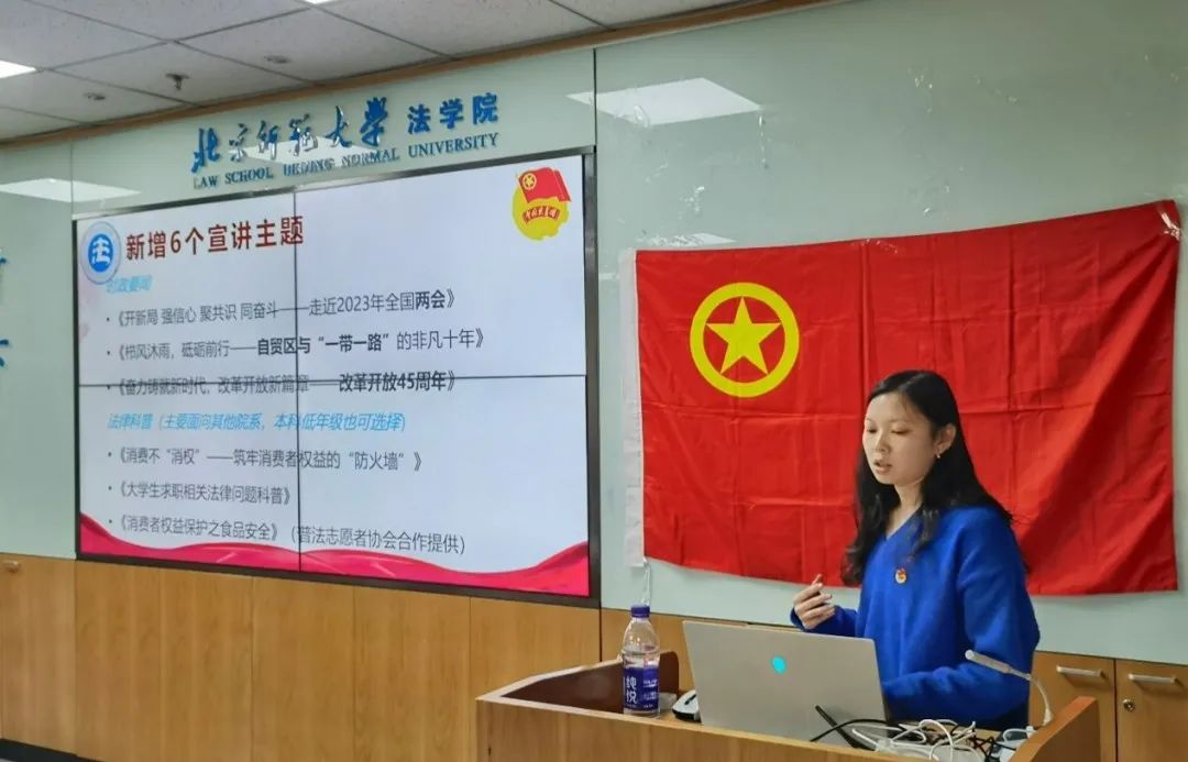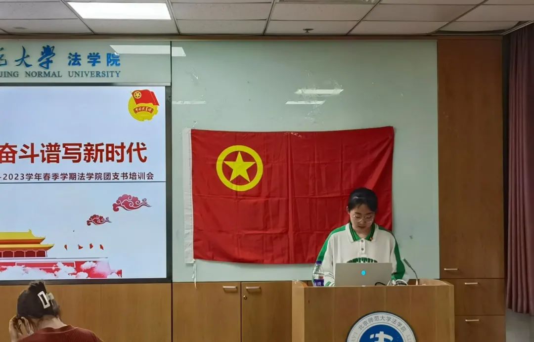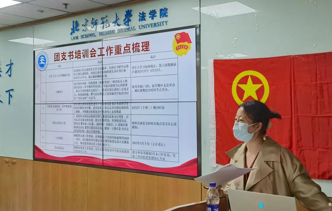 最后,林禛雨和白鸽分别从京师法“典”青春宣讲团宣讲计划和近期工作重点梳理两个方面介绍了本学期部分重点工作以及注意事项,为本学期的团支书工作开展指明了方向。