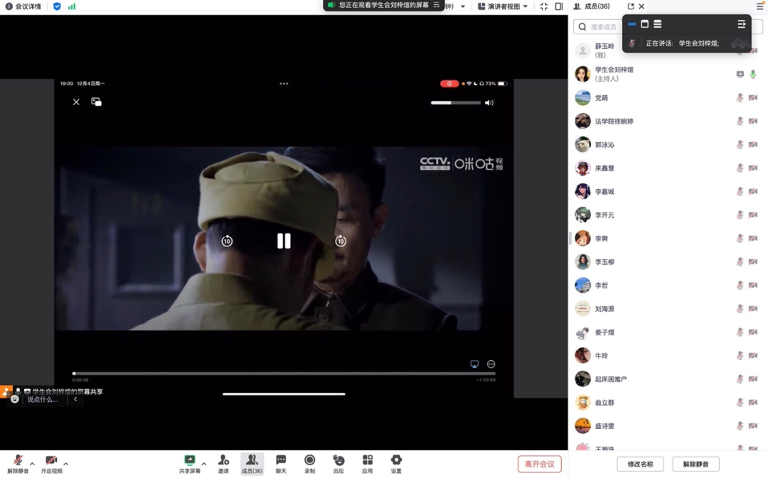 为增强同学们的宪法意识,弘扬宪法精神,加强宪法实施,全面推进依法治国、依宪治国,cn影院 2022级学硕2班全员参加了cn影院 学生会组织的线上“宪影之行,法律之思”观影活动,集体观看电影——《第一大案》。观影活动于4日晚7点开始,学硕二班团支部全体成员准时进入腾讯会议室线上观影。本次观看的电影《第一大案》是以新中国反腐第一大案——刘青山、张子善案侦办始末为蓝本,讲述1951年陈怀邦在反特行动中,挖出了地委书记刘青山的惊天秘密,昔日战斗英雄成为巨贪,陈怀邦并没有因旧时情谊而放弃内心所追求的正义,而是选择了忠诚于党纪国法,忠诚于人民,终将其送上了人民审判台故事的影片。