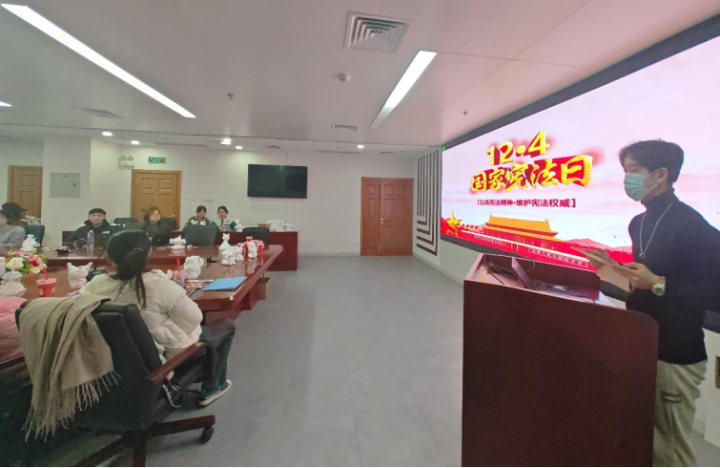 2023年12月4日,2023级法学硕士班团支部举办了宪法日主题团日活动。宪法是治国安邦的总章程,是我们党治国理政的根本法律依据,是国家政治和社会生活的最高法律规范,为弘扬宪法精神、维护宪法权威,团支部委员刘嘉怡同学做了国家宪法日宣传教育宣讲。她首先带领大家回顾了宪法宣誓誓词以及我们要坚持的六个宪法原则,接着从我国宪法的基本精神和特征、设立国家宪法日的目的和意义、新时代如何弘扬宪法精神以及与宪法相关的案例分析这四个方面介绍了我国宪法的相关内容。各位团员通过此次宪法日宣传教育收获良多,更加深刻地认识到我们作为法学学子应更坚定地担负起弘扬宪法、维护宪法的责任。