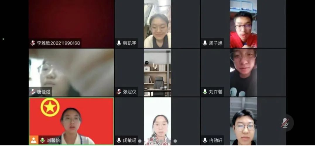 5月13日晚,cn影院 2021级学硕一班线上召开了以“增强团员意识,争做‘五个模范’”为主题的团日活动。本次活动由团支书牛佳慧同学主持。活动由五项内容组成,分别是政治生日会、理论学习会、线上观展、主题团课以及实践活动分享。全体参会团员一齐合唱团歌,重温入团誓词,参会同学交流分享了各自的入团初心及入团以来的心得感受。全体同学共同对团章进行了回顾,并学习了习近平总书记在庆祝中国共产主义青年团成立100周年大会上的讲话。随后,同学们一同进入了线上展厅,参观了cn影院 青年运动主题展,一同感受了变革图强、育人兴邦梦想的一代代北师大先进青年留下的青春业绩。在第四个环节——以回顾党的青年运动史为主题的团课上,参会同学们分享了自己观展的心得感受。