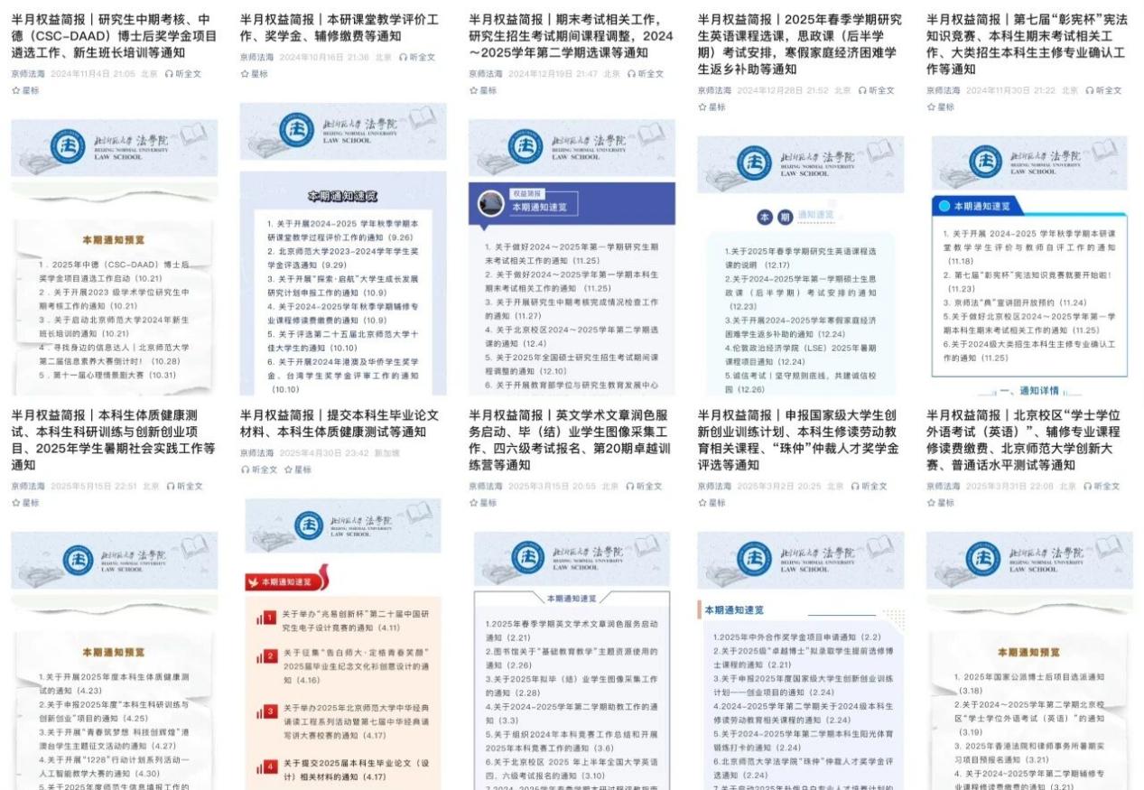 为同学办实事:纵向搭建校-院-班的垂直权益联络网,横向通过权益问卷箱、专用公邮等多种渠道,畅通同学反馈路径;并定期推出了11期半月权益简报,确保信息透明。