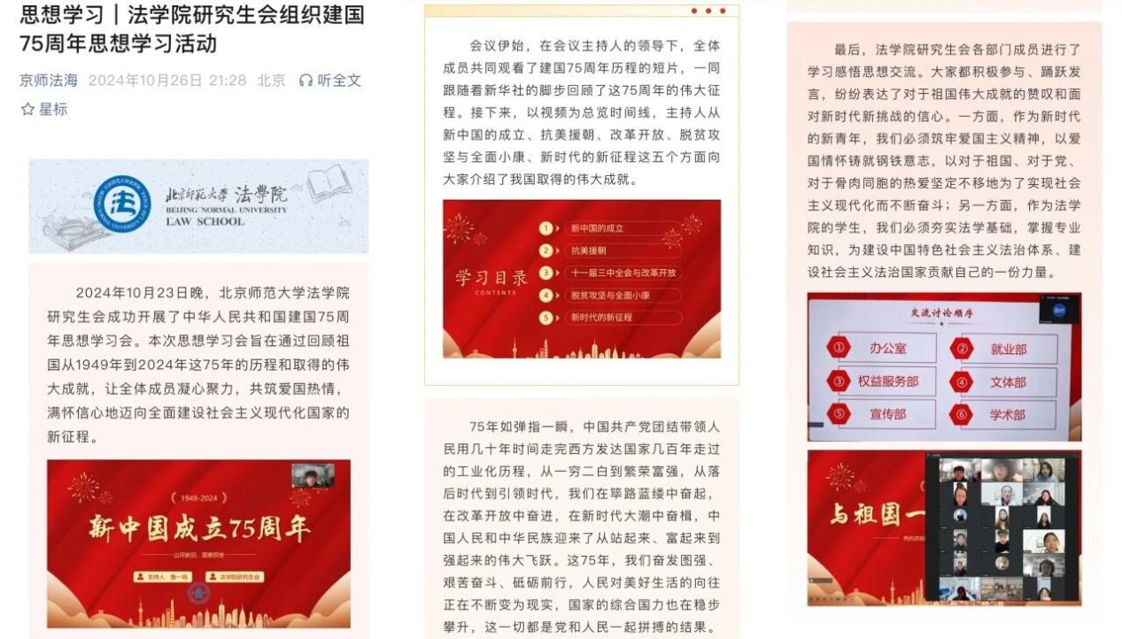 围绕建国75周年、全国两会等时政热点,组织常态化理论学习、专题学习16次,并配合学校开展了赴宋庆龄同志故居、中央礼品文物管理中心等红色阵地的实践调研活动。