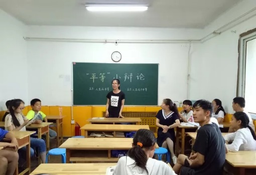 除了生动有趣的课堂,本次正义者联盟普法实践的还有一大亮点,就是注重课堂所讲授知识与课堂活动的紧密衔接。每天在普法小课堂结束后都会开展与课堂核心主题相关的活动,如通过如何分蛋糕让孩子们体会如何分配才能实现公平;在讲述证据与投票表决时,让孩子们参与到“狼人杀”游戏当中;在讲授平等与平等权时让孩子们分为两组进行关于是否赞同“人生而平等”的辩论赛,以及模拟法庭让孩子们感受秩序与公正等。丰富多彩的活动为孩子们理解掌握与运用课堂所学法律知识提供了很好的平台,每次的活动,孩子们都非常积极的参加,让我们的普法小课堂保持着活跃的氛围。在开展课程和参与活动的过程中,正义者联盟的小伙伴们发现,孩子们对所讲的法律知识的吸收和理解能力都很强。每一个课堂活动的设计以及实施都包含着小分队成员的努力付出,每天晚上十点左右,我们都要聚集在一起,讨论今天的课程与活动的情况,找出闪光点以及不足之处,以期在第二天实现更好的效果。法律知识与相关活动的结合也使得孩子们能更好地体会到法律在现实生活中的运用。