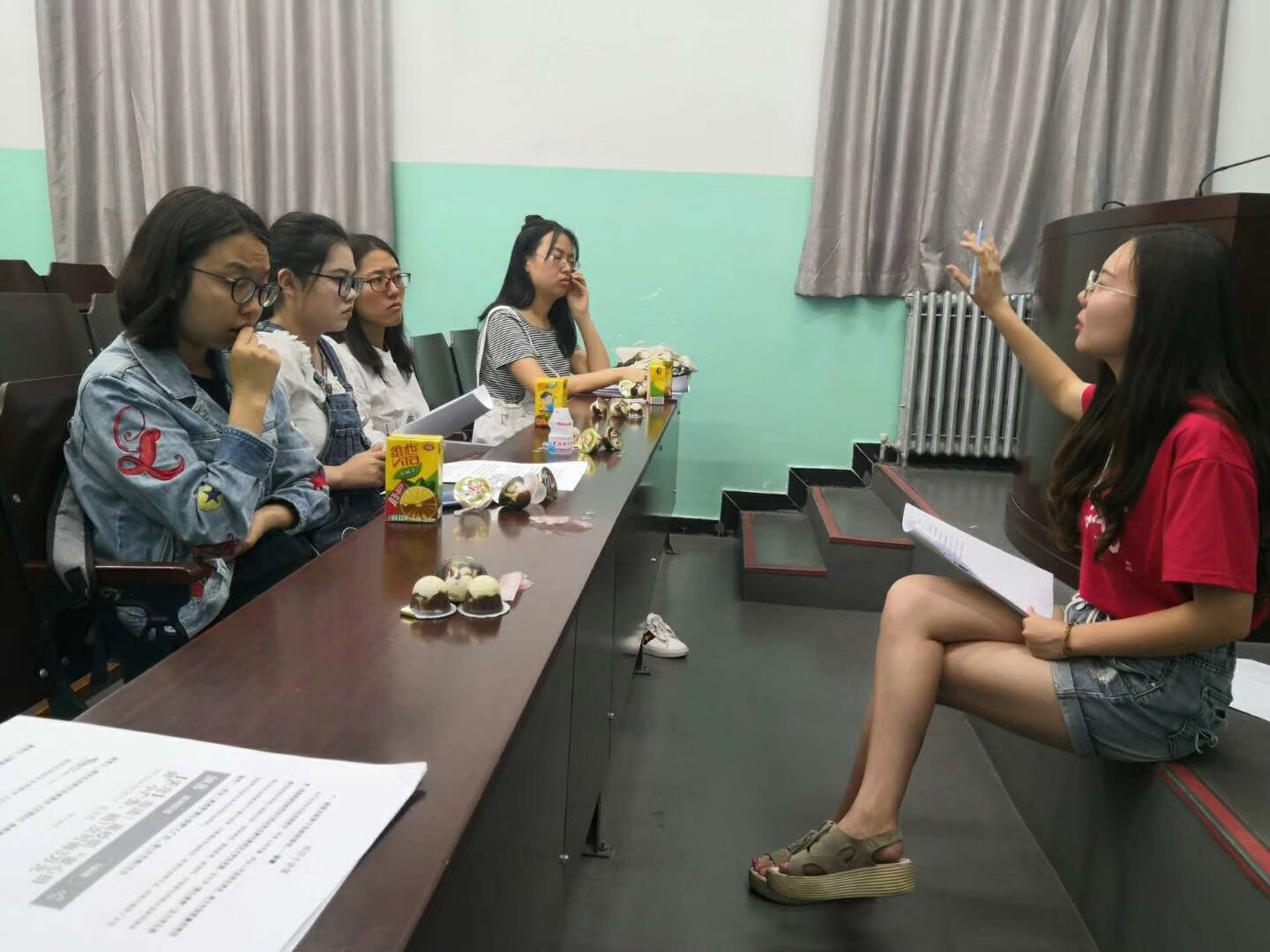 首先,我们将活动地点定在了教十,并购买了零食和饮料,为参与者提供较为良好的实验环境,保证实验的顺利进行。在参与者全部到达之时,我们的主试刘靓翾同学便为各位参与者作了实验说明,介绍本次实验的主要的内容。