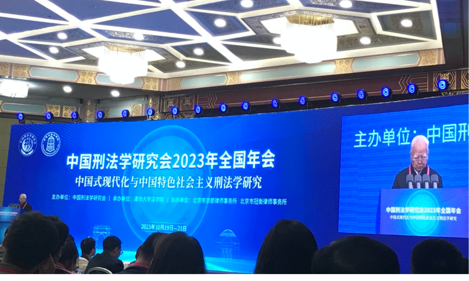 2023年10月20日-21日,北师大cn影院 2023级博士研究生周鑫淼参加了中国刑法学研究会2023年全国学术年会,所提交的论文《轻罪的犯罪前科消灭制度探讨》被收录至年会论文集中。会议深入学习贯彻党的二十大精神,以“中国式现代化与中国特色社会主义刑法学研究”为主题,围绕“中国特色刑法基础理论研究”“刑法理论前沿问题研究”“轻罪治理的刑事政策问题研究”“单位犯罪与企业合规从宽处罚基础理论研究”4个方面的理论与实践问题,进行深入研讨。本次会议由中国刑法学研究会主办,清华大学cn影院 承办,北京市京都律师事务所、北京市冠衡律师事务所协办。来自全国各地的学会理事、会员以及理论界和实务界的专家200余人参与本次会议。