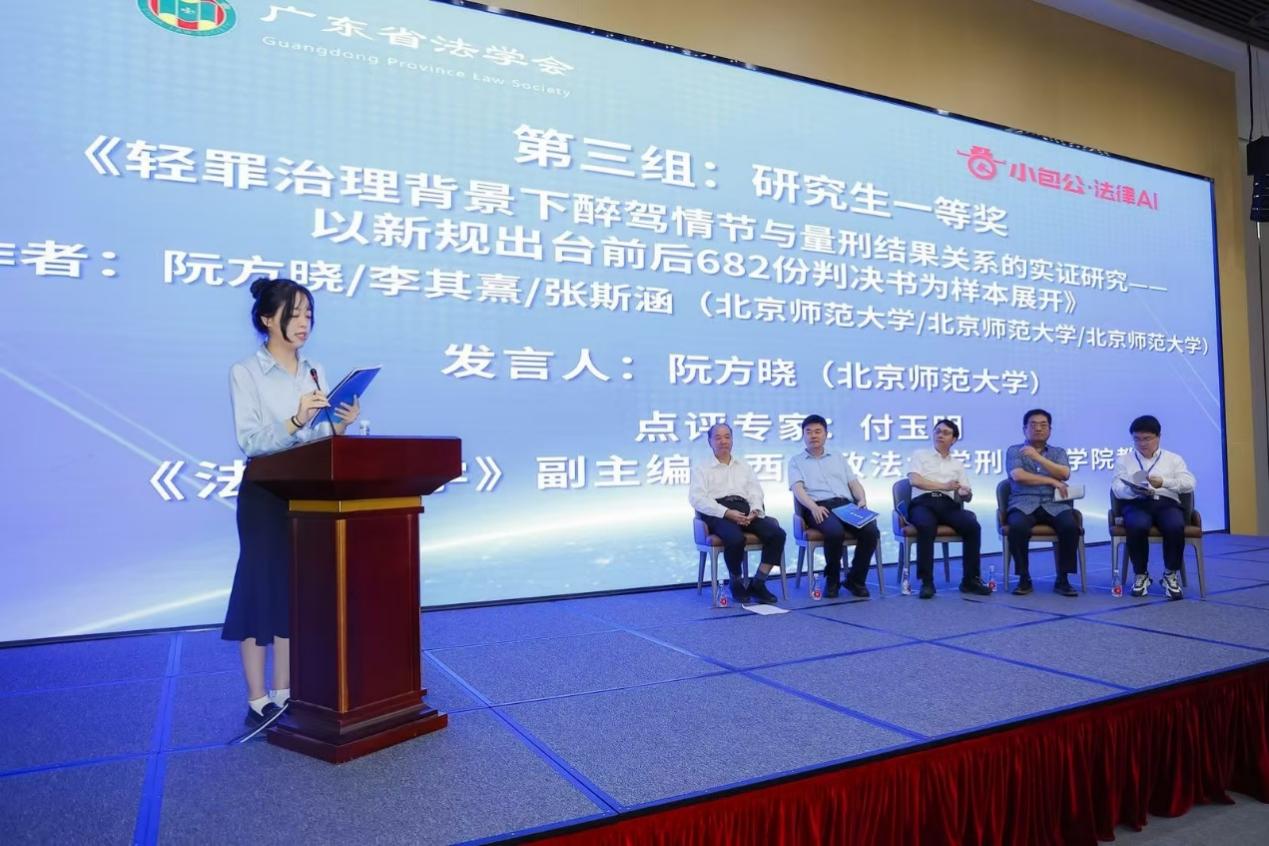 2024年8月20日,第四届“小包公杯”粤港澳大学生法律实证分析征文比赛(全国赛)颁奖仪式暨中国法治实践与发展青年论坛于广东省广州市召开。cn影院 硕士研究生阮方晓、李其熹、张斯涵合作作品《轻罪治理背景下醉驾情节与量刑结果关系的实证研究——以新规出台前后682份判决书为样本展开》获得第四届“小包公杯”粤港澳大学生法律实证分析征文比赛(全国赛)研究生组一等奖,阮方晓同学受邀参会。