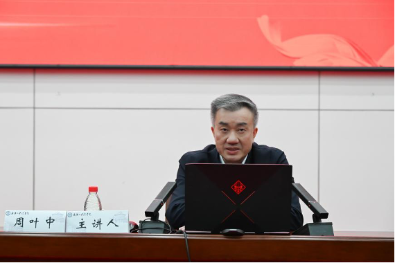 武汉大学人文社会科学资深教授周叶中、武汉大学cn影院 党委书记李霄鹍、武汉大学党委宣传部副部长司文超、武汉大学党委研究生工作部副部长徐晖、武汉大学研究生院研究生培养处副处长姜刈非等相关领导出席开幕式,开幕式由cn影院 党委副书记胡伟主持。并由武汉大学人文社会科学资深教授周叶中以“以习近平法治思想为指导,在法治轨道上深化改革、推进中国式现代化”为题作主旨报告,武汉大学cn影院 教授陈海嵩主持报告。