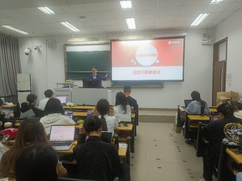 张剑君先生为同学们准备了丰富多样的好丽友零食礼物。以此为引,张剑君先生首先对好丽友集团进行了简要介绍,使同学们对这个知名品牌的历史渊源、旗下产品等有了更深入的了解。
