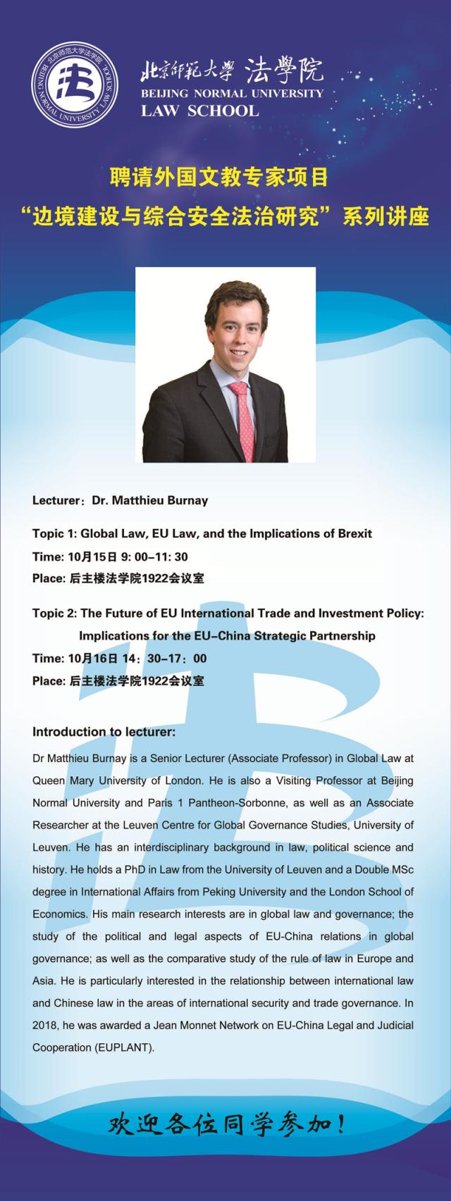 【10.15】聘请外国文教专家项目 “边境建设与综合安全法治研究”系列讲座/主讲人:Dr.Mathieu Burnay