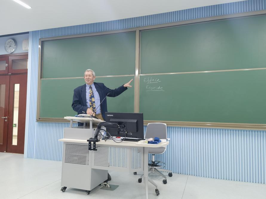 讲座伊始,Faure教授首先回忆了去年秋季在cn影院 开展讲座的经历,对cn影院 各位师生的学术热情表达了赞赏与感谢,简要归纳了本次讲座对首次讲座的内容拓展,并就欧盟环境刑法的进展进行简要介绍。Faure教授提到,本次讲座主要关涉两个问题:一是以自主性环境犯罪设计保护环境公益的重要性;二是以刑法保护环境公益的路径探索。Faure教授指出,刑法不能将所有环境行为视为犯罪。原因在于,排污或生态利用行为在合理范围内为法律所允许,环境违法行为与谋杀等具有纯粹损害属性的行为存在巨大差异。环境犯罪的尺度把控是一个“平衡”问题,立法者需要在经济利益与环境公益、人权保障与环境保护之间进行权衡与协调。环境犯罪常以“违反行政法义务”为前提,这样的设置在法理与实践中均有裨益,但也导致环境规制面临着“监管捕获”、“许可盾牌”(permit shield)条款产生实践问题、行政法不完善致使刑法保护力度不足等问题,需要研究者进一步思考加以应对。此外,Faure教授还讲述了他所进行的EFFACE项目、生态灭绝罪(Ecocide)研究被相关法令、规约立法吸纳的始末故事,生动的叙述引起在场师生的阵阵笑声。