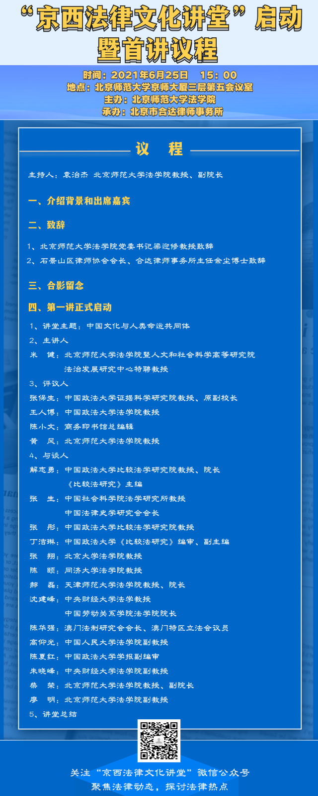 【06.25】“京西法律文化讲堂”启动暨首讲预告