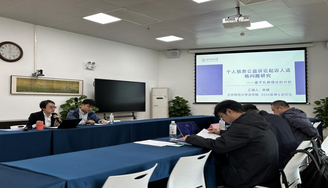 本次活动的第一位报告人,是cn影院 行政法学专业的博士研究生陈婕,她报告的题目是《个人信息公益诉讼起诉人适格要件研究——基于扎根理论的分析》。她着重向大家汇报了扎根理论这一法学领域较少运用的研究方法,通过对已有的个人信息保护公益诉讼案件的司法文书进行编码分析,抽象出个人信息保护公益诉讼起诉人适格的合法性基础要件和功能性价值要件,并对每一个要件维度进行了详细阐释和分析。