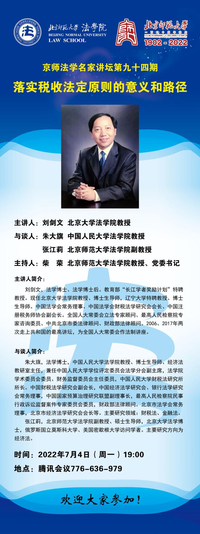 【07.04】京师法学名家讲坛第九十四期:落实税收法定原则的意义和路径/主讲人:刘剑文